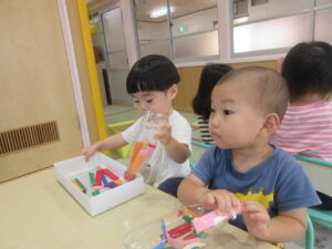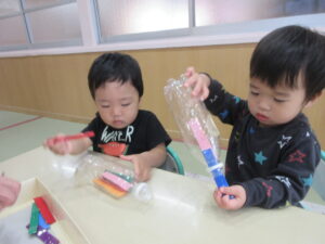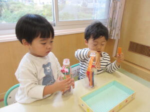 HOME > 園でのちょっとしたこと > 園でのちょっとしたこと うめ組 投稿日:2025年10月20日 大型ブロックで遊びました。 手作りおもちゃで指先を使って遊びました。 Twitter シェア Google+ Pocket B!はてブ LINE -園でのちょっとしたこと