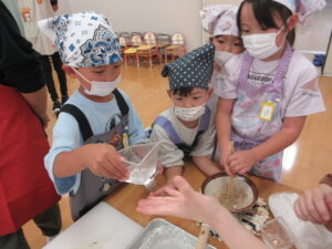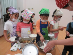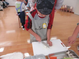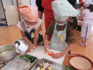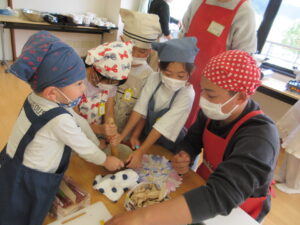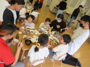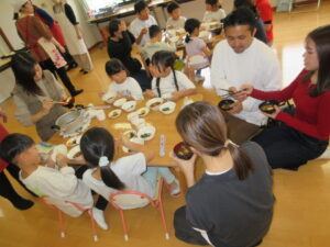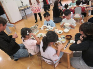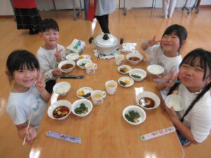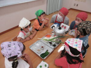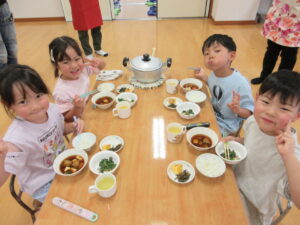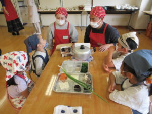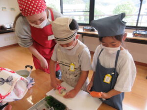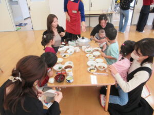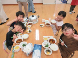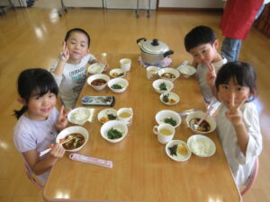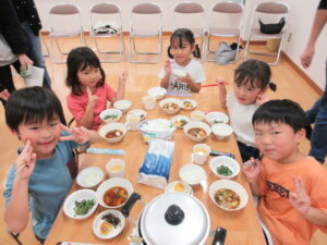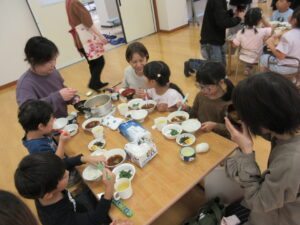 HOME > 園の行事 > 園の行事 ばら組 投稿日:2025年10月24日 キッズキッチンに参加しました。 いつも広谷こども園さんが使用しておられる市のバスに乗って、やぶ保健センターに行きました。 まず始め、かまどでご飯を炊くところを見学。 調理実習に向けてしっかりお話を聴きました。 いよいよ調理実習開始。 料理ができあがりました。 みんなで「いただきます。」 おいしくできて嬉しかったね! Twitter シェア Google+ Pocket B!はてブ LINE -園の行事