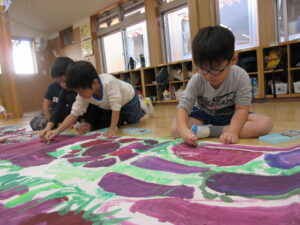 HOME > 園でのちょっとしたこと > 園でのちょっとしたこと 投稿日:2025年10月24日 昨日描いたさつま芋の絵に虫と土を描き加えました。 虫はクレヨンで。土はコンテを削って描きました。 みんな集中して熱心に取り組みました! Twitter シェア Google+ Pocket B!はてブ LINE -園でのちょっとしたこと