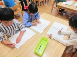 HOME > プレ学習 > プレ学習 園の行事 ばら組 投稿日:2025年11月6日 習字教室がありました。 Twitter シェア Google+ Pocket B!はてブ LINE -プレ学習, 園の行事
