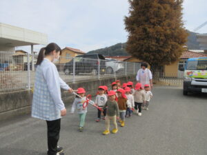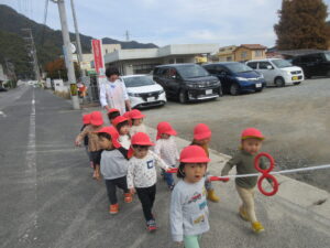 お散歩ロープを持って、みふね会館まで歩きました。
