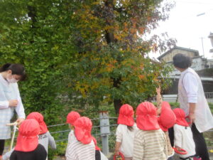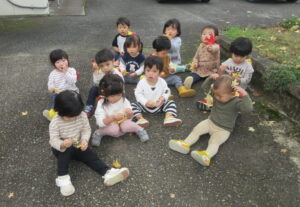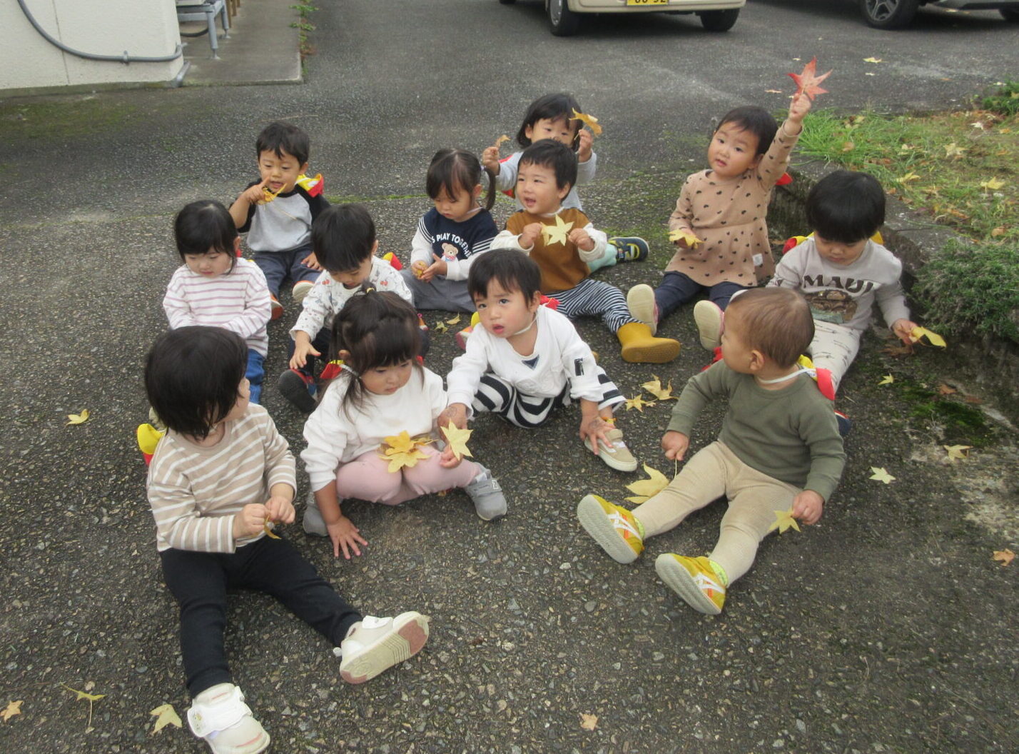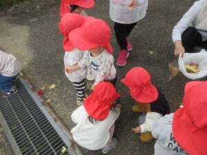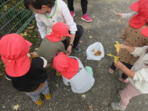 きれいに紅葉した落ち葉を見つけて大喜び。