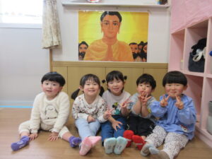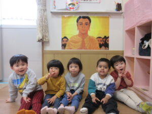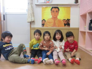 成道会のお話で使った「のの様」の絵の前でパチリ📸