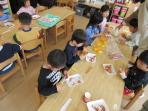 HOME > 園でのちょっとしたこと > 園でのちょっとしたこと ゆり組 投稿日:2025年12月10日 昨日と今日、制作遊びをしました。 みんなでお弁当タイム🍱 おいしいお弁当🍱ありがとうございました。 Twitter シェア Google+ Pocket B!はてブ LINE -園でのちょっとしたこと