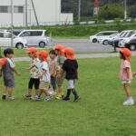 絵本タイム。 室内から「どんど焼き」を見学。 焼きみかん。 室内遊び。 給食。