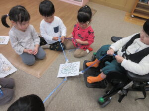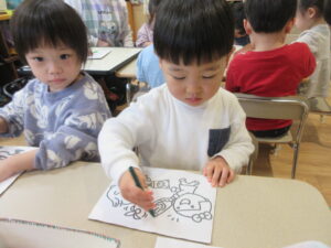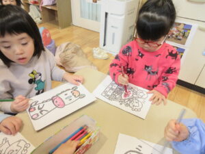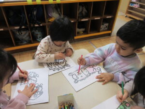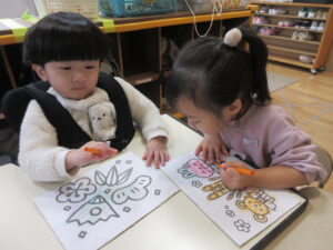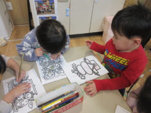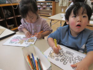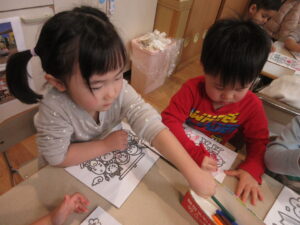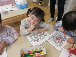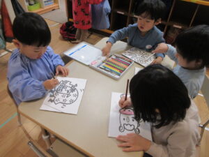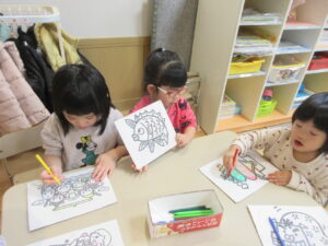 その後、お正月にちなんだぬり絵をしました。