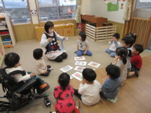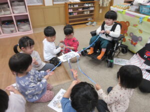 音楽やリズムに合わせた体の動きを楽しんだり、季節の行事に興味や関心がもてるようにしています。