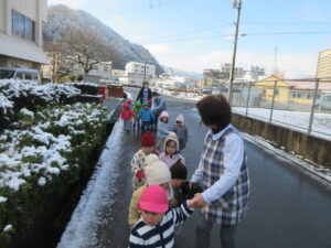 HOME > 園でのちょっとしたこと > 園でのちょっとしたこと もも組 投稿日:2026年1月9日 いいお天気になったのでお散歩に出かけました🌞 雪が積もっているところで雪遊び⛄ 楽しいお散歩でした⛄ Twitter シェア Google+ Pocket B!はてブ LINE -園でのちょっとしたこと