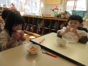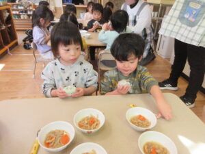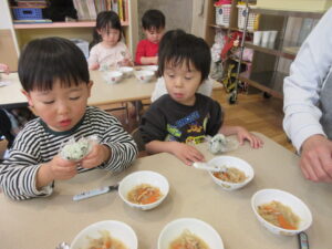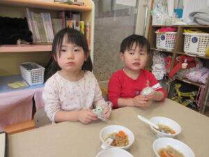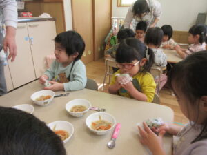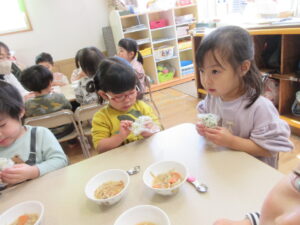 HOME > 園でのちょっとしたこと > 園でのちょっとしたこと もも組 投稿日:2026年1月19日 園庭で遊びました。 備蓄食の給食を食べました。 Twitter シェア Google+ Pocket B!はてブ LINE -園でのちょっとしたこと