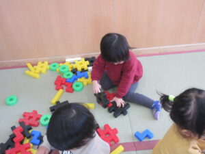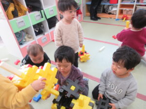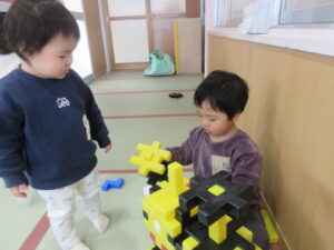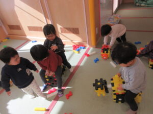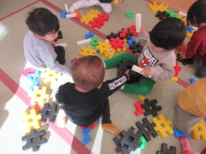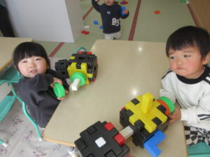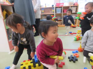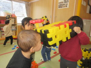 大型ブロックで遊びました。