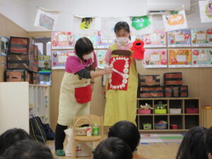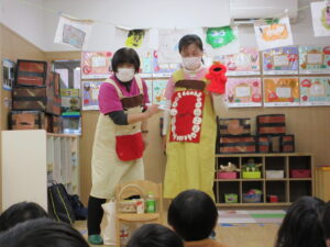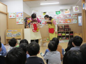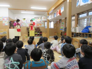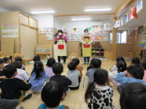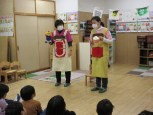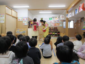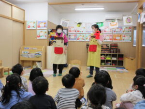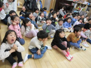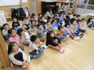 HOME > 園の行事 > 園の行事 ゆり組・きく組 投稿日:2026年1月28日 歯の健康教室があり、ゆり組ときく組さんが一緒にお話を聴きました。 「エルモ」と「しまじろう」が楽しく虫歯予防のお話をしてくれました。 エプロンをから大きな口の中が出てきてびっくり! 大きな口を使って歯のみがき方を教えてもらいました。 みんな真剣に聴きました。 お家での仕上げ磨きもよろしくお願いします。 Twitter シェア Google+ Pocket B!はてブ LINE -園の行事