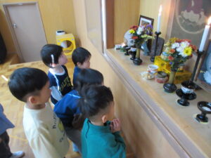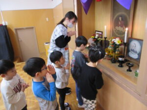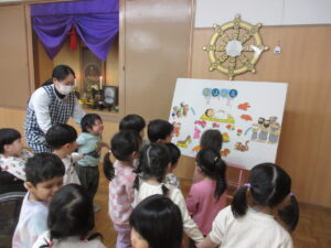 のの様がお悟りを開かれた「成道会」の時のお約束は「生き物をかわいがります」「道具を大切にします」「お友達と仲よくします」「良いことは進んでし、悪いことはすぐやめます」でしたね。