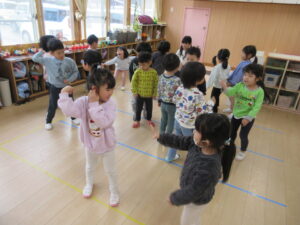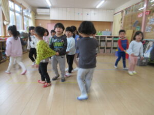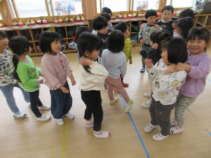 HOME > 園でのちょっとしたこと > 園でのちょっとしたこと ゆり組 投稿日:2026年2月26日 じゃんけん列車をして遊びました。 その後は好きな遊び☺ お遊戯室でマラソンをしました。 Twitter シェア Google+ Pocket B!はてブ LINE -園でのちょっとしたこと