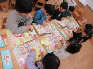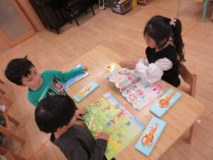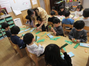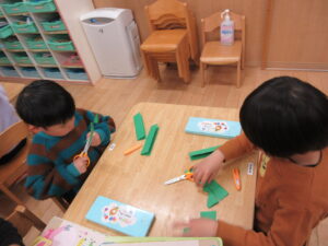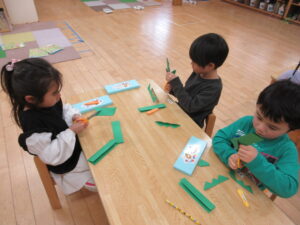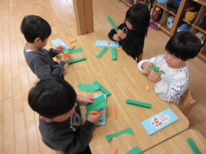 HOME > プレ学習 > プレ学習 園でのちょっとしたこと きく組 投稿日:2026年3月4日 画用紙を切ってタンポポの葉っぱを作りました。 英会話教室がありました。 元気いっぱいの大きい声を出して参加しました! Twitter シェア Google+ Pocket B!はてブ LINE -プレ学習, 園でのちょっとしたこと