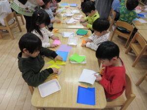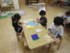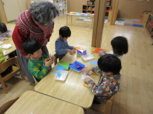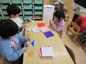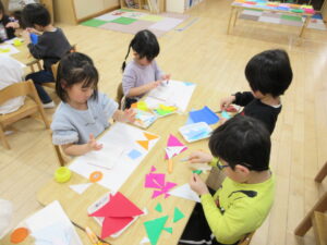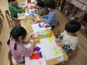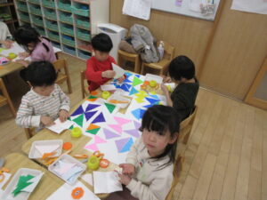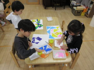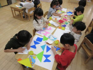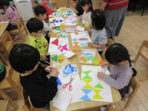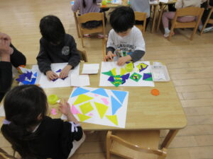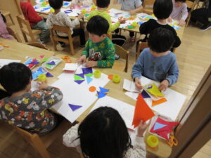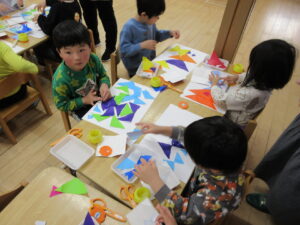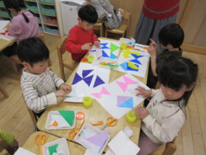 HOME > プレ学習 > プレ学習 園でのちょっとしたこと 園の行事 きく組 投稿日:2026年3月5日 絵画教室で「三角で好きな物を作ってみよう」というテーマで作品を作りました。 色や並べ方を考えて、それぞれ素敵な作品が出来上がりました。 その後、ばら組さんの教室に遊びに行きました。 お弁当もばら組の教室で食べました。 進級するのが楽しみです! 愛情たっぷりのお弁当ありがとうございました🍱 Twitter シェア Google+ Pocket B!はてブ LINE -プレ学習, 園でのちょっとしたこと, 園の行事