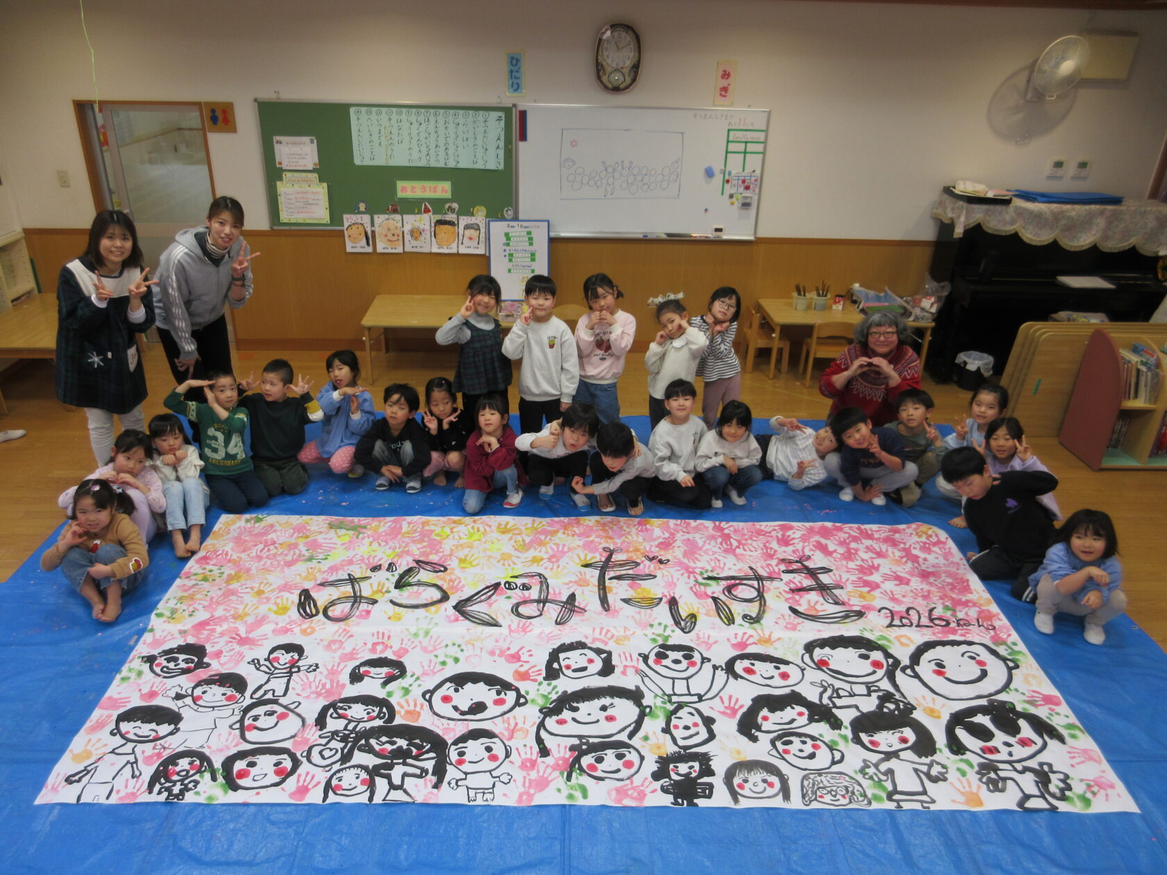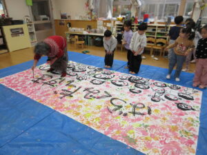 HOME > プレ学習 > プレ学習 園でのちょっとしたこと 園の行事 ばら組 投稿日:2026年3月10日 最後の絵画教室がありました。 大きな紙に一人ずつ自分の顔を描きました。 次は手形をペタペタ✋ 田中今子先生に字を書いてもらいました。 完成した作品は、卒園式の日に飾ります。 2年間お世話になった田中今子先生にお礼のプレゼントを渡しました。 園庭遊び。 大好きなドッジボールを楽しみました。 Twitter シェア Google+ Pocket B!はてブ LINE -プレ学習, 園でのちょっとしたこと, 園の行事