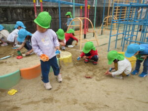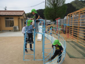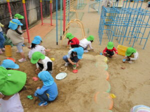 園庭で遊びました。
