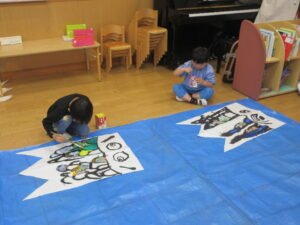 こいのぼり作りが完成に近づいています🎏
