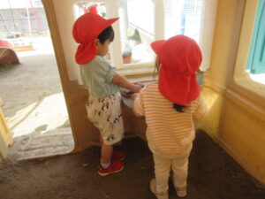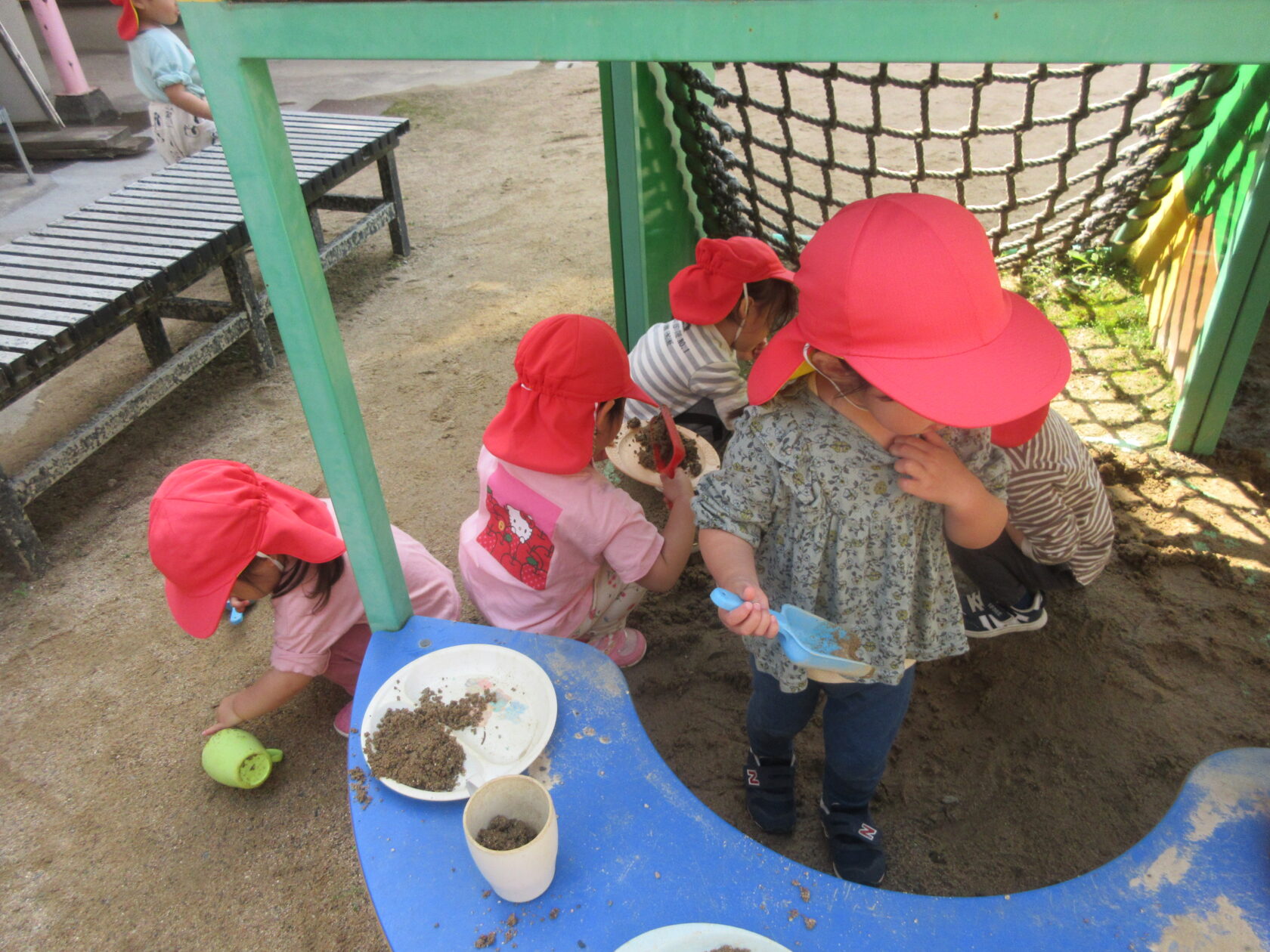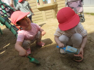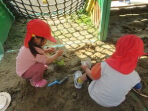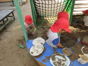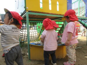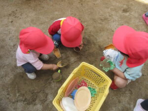 園庭で砂遊びをしました。