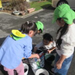 いい天気が続いています。 ゆり組の泥んこ遊びの様子を紹介します。 柔らかい泥の感触を全身で楽しんでいます。