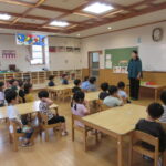 養父市造形教育展に出展していた佐々木花菜ちゃん(ばら組)の絵画が入選しました。 園長先生から賞状を渡してもらいました。 おめでとうございます!