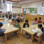 英会話教室。 ばら組の教室ではなく、隣の教室で行いました。 クリスマス飾り制作🎅 熱心に取り組んでいます。